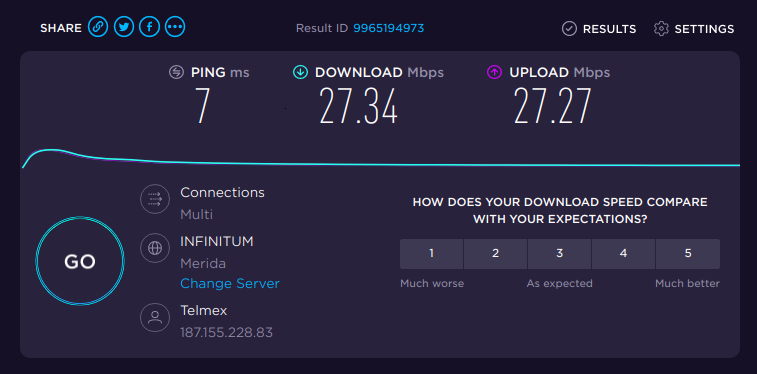 Podemos hacer un SpeedTest, para esto debemos estar conectados a la ONU