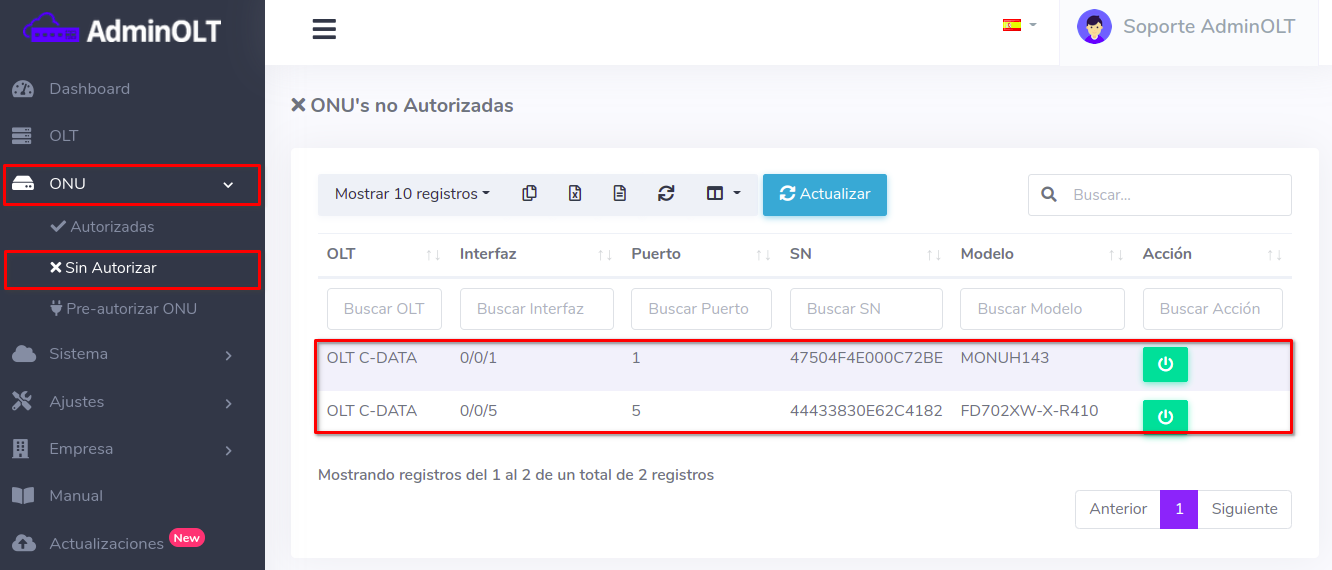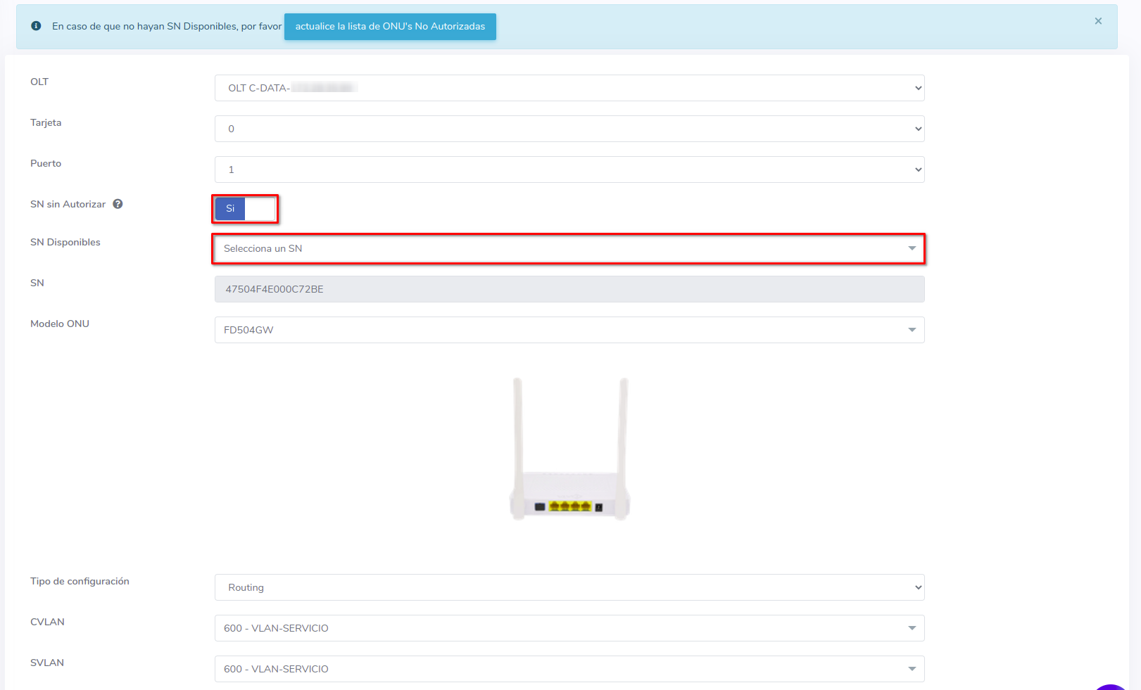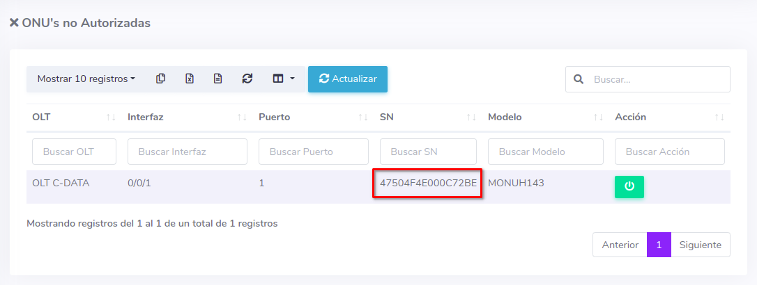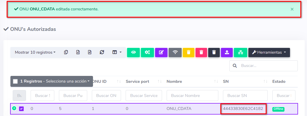 Pasos para editar información de ONU Autorizada por SN