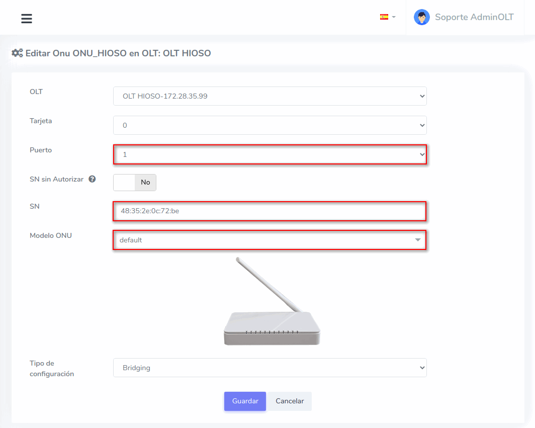 - Editar ONU en AdminOLT desde Lista de ONU's Autorizadas