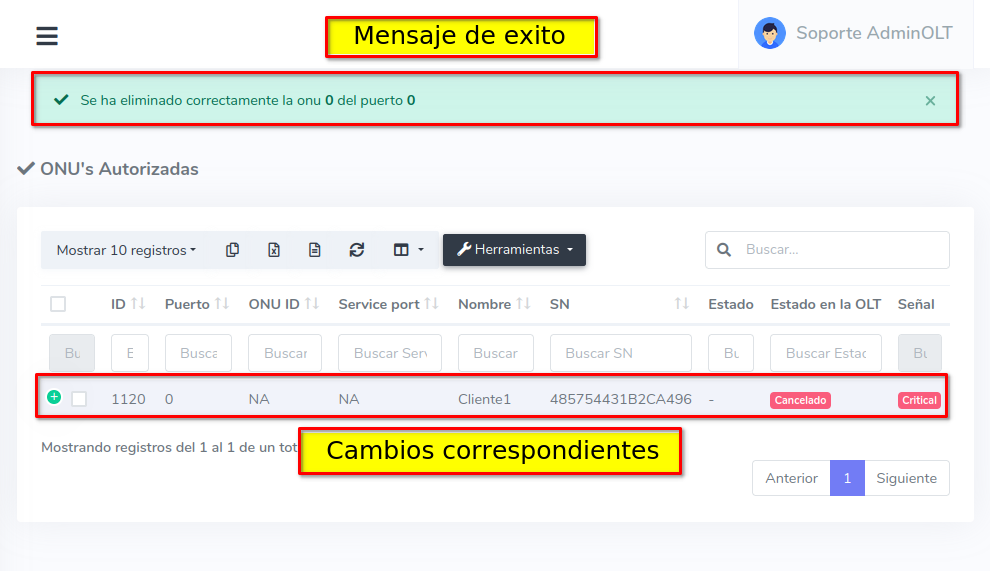 Eliminar ONU de AdminOLT y OLT desde Lista de ONU's Autorizadas