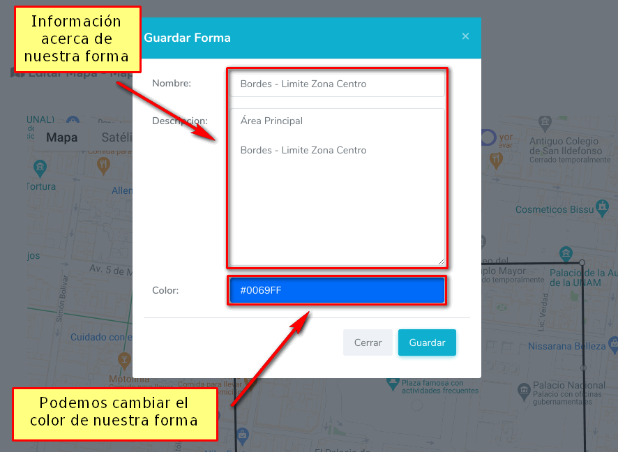 Una forma es una herramienta que nos puede ayudar a describir más acercá de nuestro mapa como limitar los lugares donde damos servicios, donde no podemos dar servicios por alguna razón, también nos puede servir para dibujar lineas que representen algo importante. A continuación se muestran algunos ejemplos.