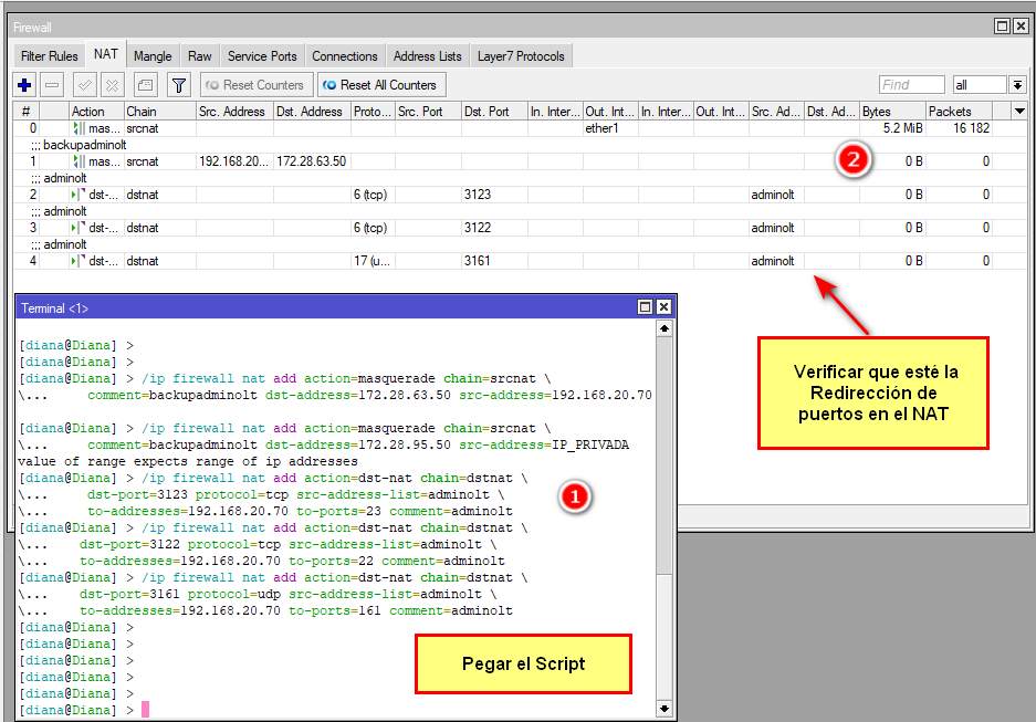 Después de haberlo copiado dirigirse al Mikrotik, abrir una Terminal y pegar el Script.