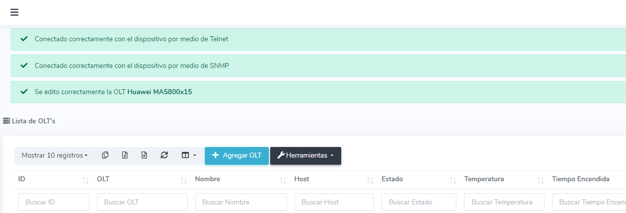 4Dirigirse a la Lista de OLT y Verificar conexión